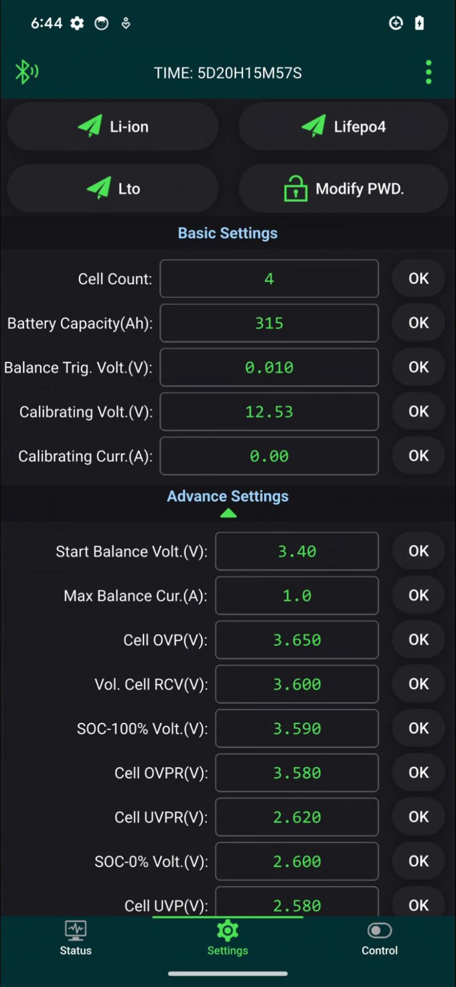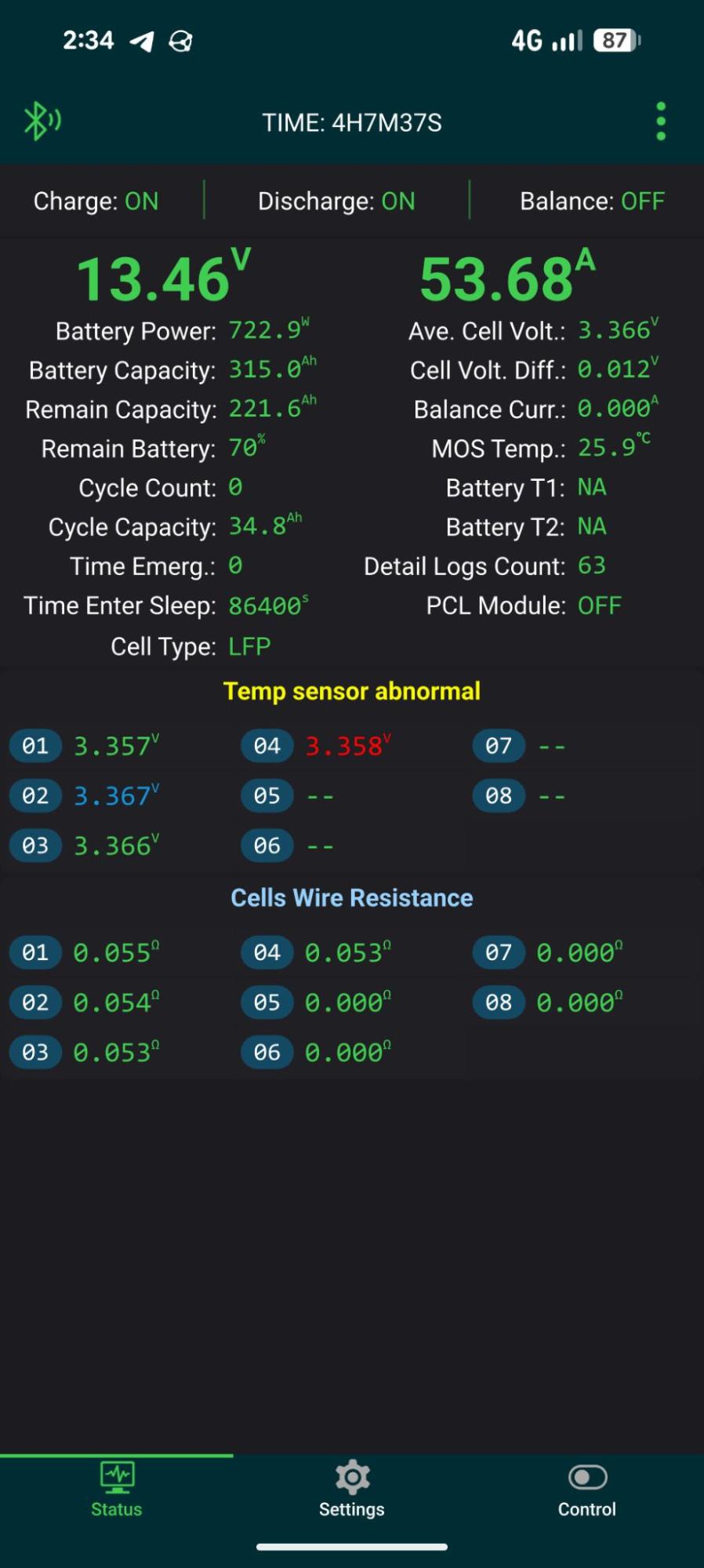Now the battery is assembled and the BMS board needs to be configured. There’s an Android app for that, it connects to the BMS via Bluetooth and allows you to configure many in-depth parameters of the battery.