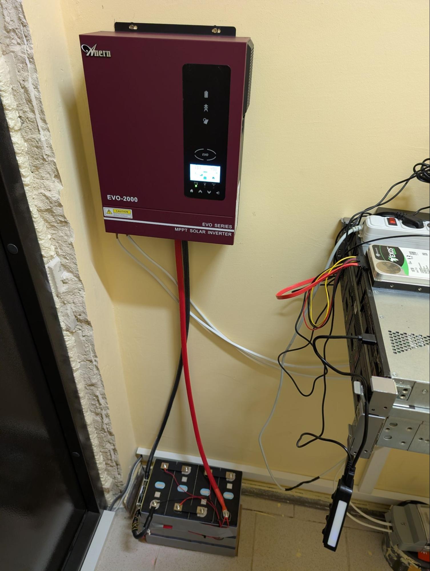 Next thing you need is some way to convert 12V DC battery voltage to 230V AC mains voltage to power common devices like servers.