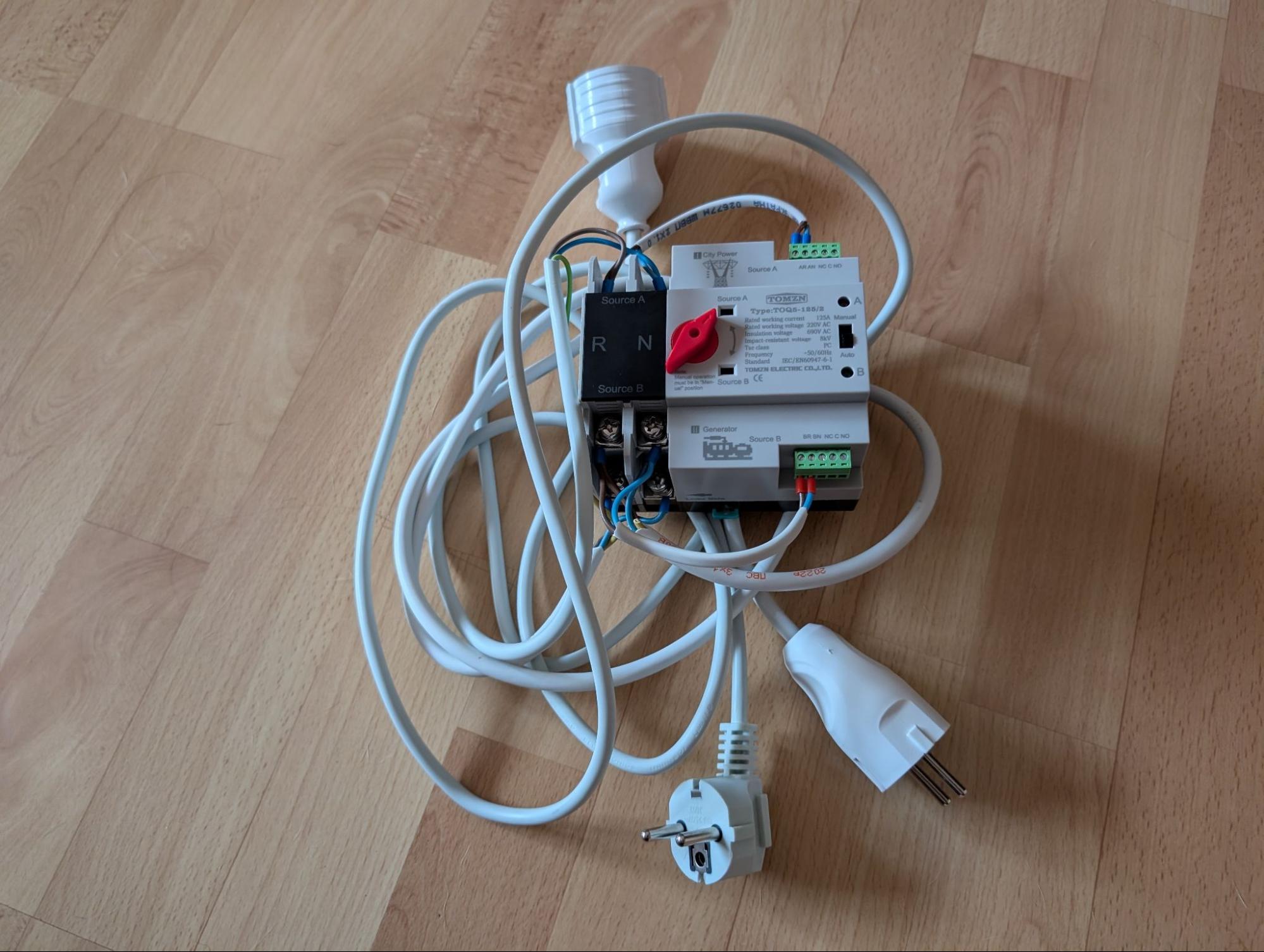 You can connect the whole apartment to such a battery system using cable with plugs on both ends, though it’s important to remember to switch off the main breaker beforehand, otherwise the inverter will fry when electricity is turned back on.