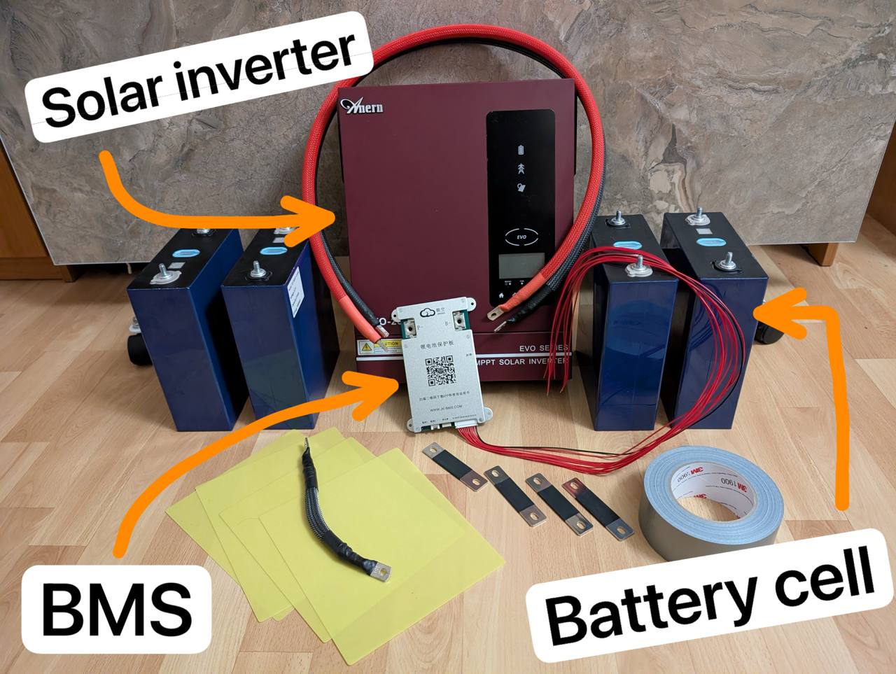 For building your own gear you have to buy individual components like battery cells, protection board for them, inverter to 220V AC, charger, etc and assemble/connect it yourself.